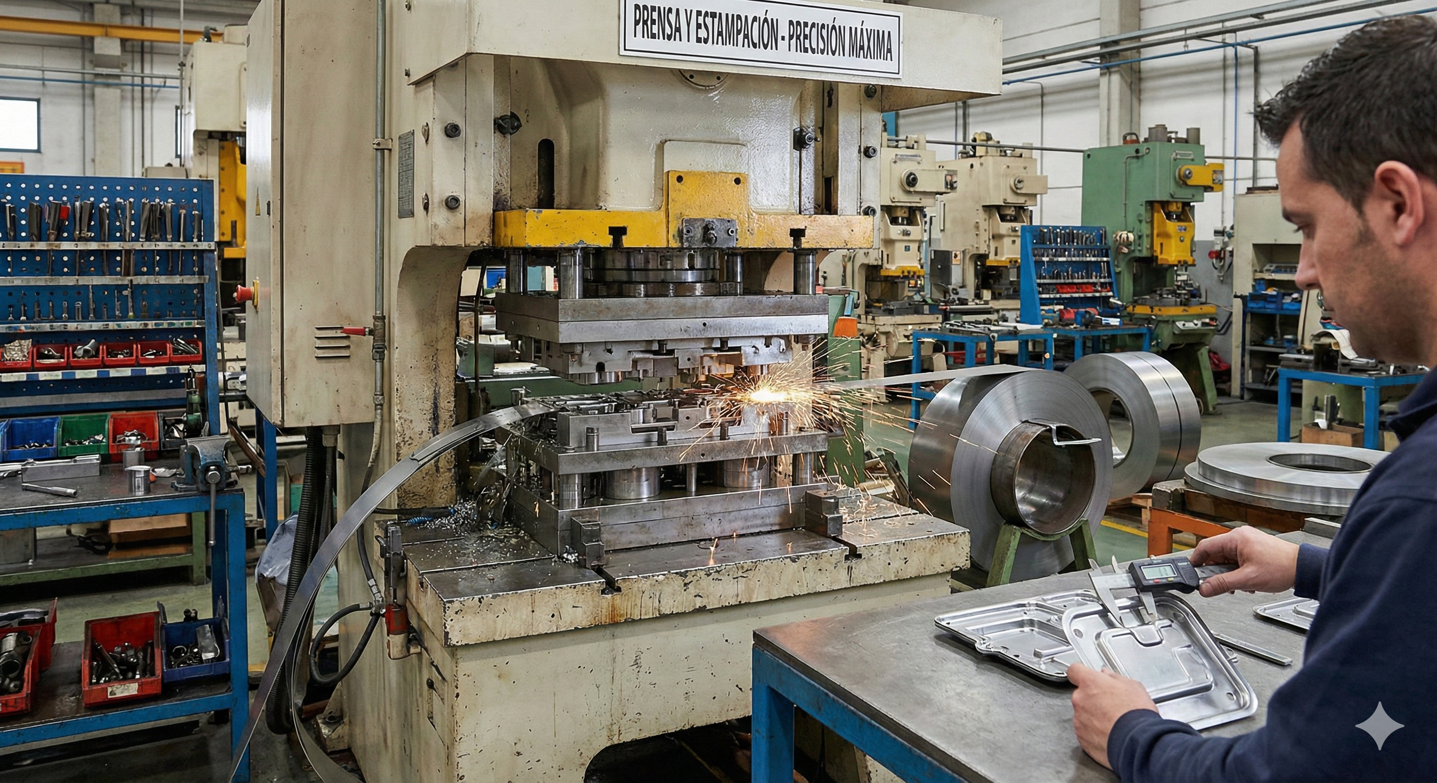 Producción en serie de piezas estampadas con control SPC. Troqueles progresivos para series optimizadas.